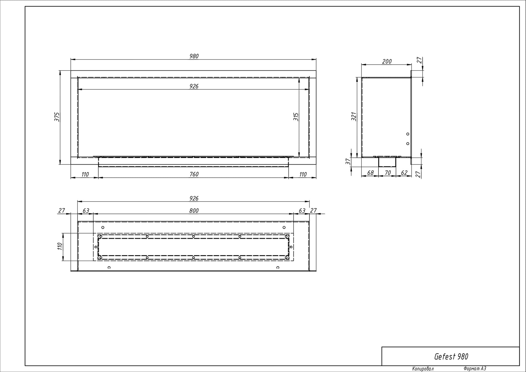 Встраиваемый биокамин «Гефест 980V» изготовлен из стали и нержавеющей стали, окрашен термостойкой порошковой краской.